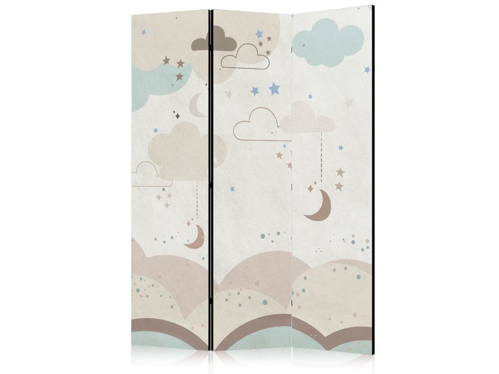 Paraván - Zamračená noční obloha - Měsíce v hnědé a béžové barvě uprostřed četných mraků a hvězd na světlém pozadí