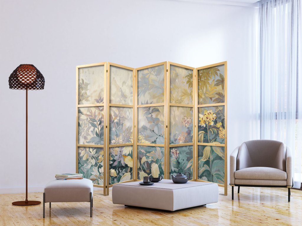 Japonský paraván - Gobelínový vzor s loukou a květinami: Kilim s jarním motivem