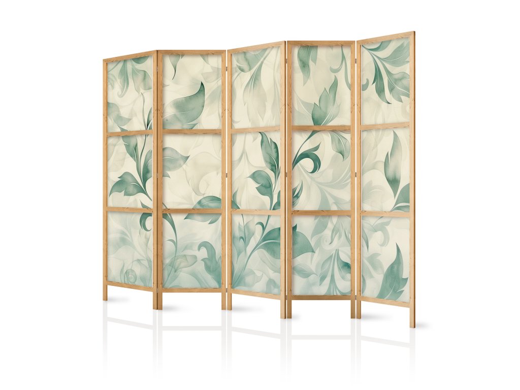 Japonský paraván - Botanický motiv akvarelu: Jemné zeleno-béžové listy