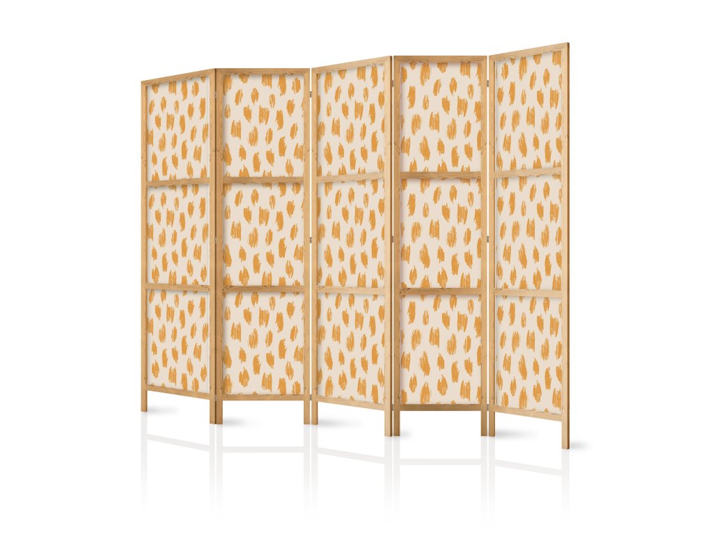 Japonský paraván - Kreslený vzor v tečkách a skvrnách: V odstínech oranžové a ecru