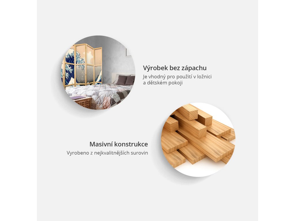 Japonské paravany si zaslouží pozornost, a to nejen kvůli svému jedinečnému designu. Naše výrobky vynikají také velmi pevnou konstrukcí založenou na dřevěném rámu. Díky použití kovových pantů lze japonskou zástěnu snadno otevírat a zavírat. Nejedná se o namáhavou činnost. Je to lehká dekorace, ale stojí pevně na zemi a nekýve se. To vše činí pokojové japonské paravany nenahraditelnými a vyhovují všem, i těm nejnáročnějším. Důležité je také poznamenat, že každý výrobek byl podrobně zpracován a velmi poctivě vyroben. Vzory jsou výrazné a věrně reprodukují detaily. Jedná se o vysoce kvalitní potisky umístěné na výztuži příjemné na dotek. Díky ochraně proti UV záření, kterou má každá z našich japonských paravanu, není problémem ani dlouhodobé vystavení slunečním paprskům a blednutí barev.