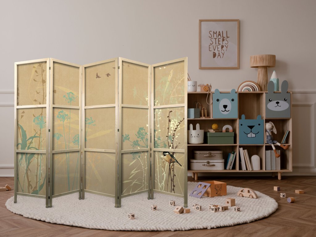 Japonský paraván - Tiny Bird - Barevné trávy ve zlatých odstínech západu slunce.