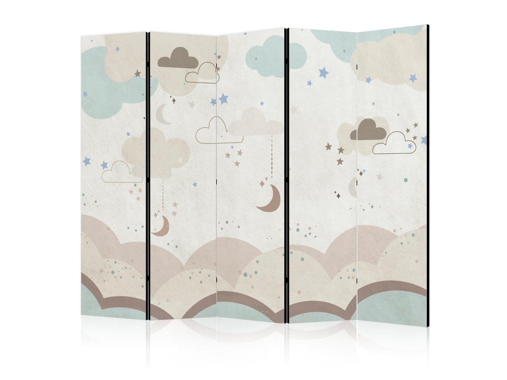 Paraván - Zamračená noční obloha - Měsíce v hnědé a béžové barvě uprostřed četných mraků a hvězd na světlém pozadí