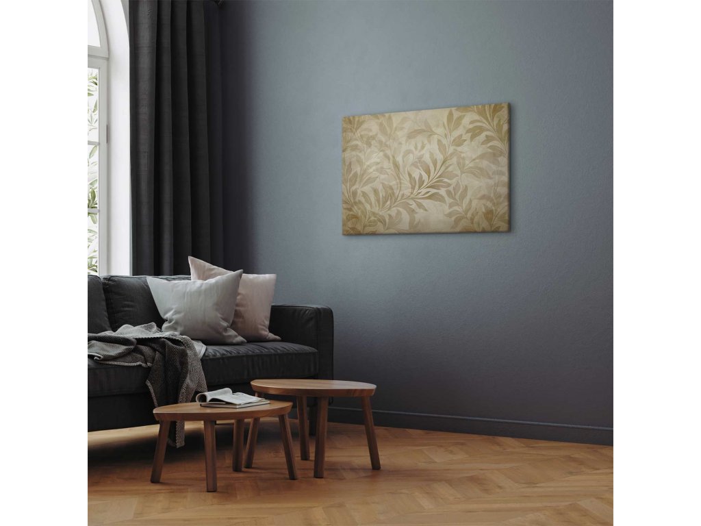 Obraz - Botanický motiv s listy a vinnou révou v pískových barvách
