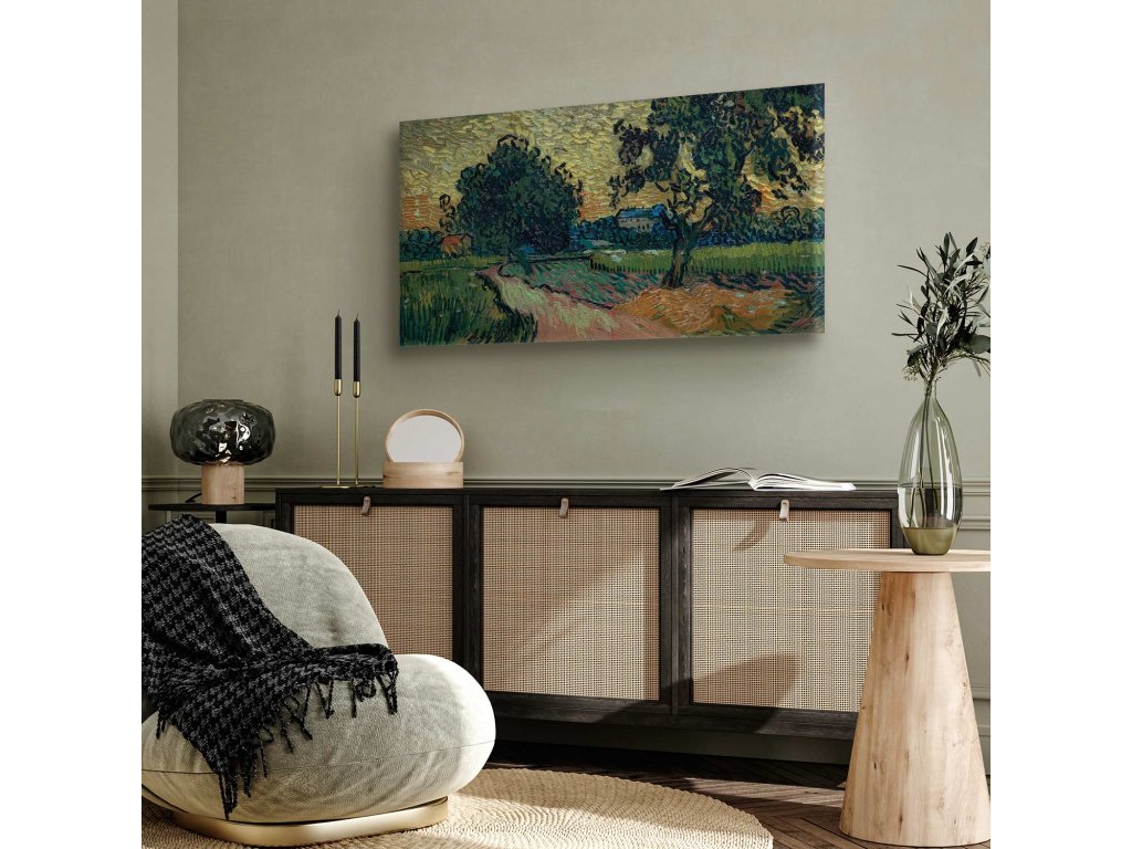 Obraz - Krajina se zámkem Auvers při západu slunce (Vincent Van Gogh)