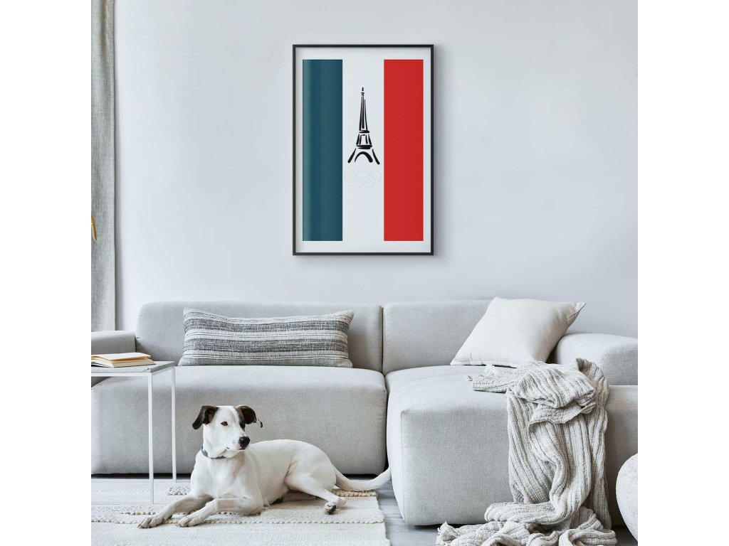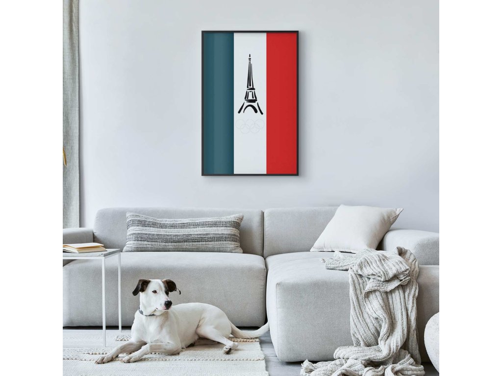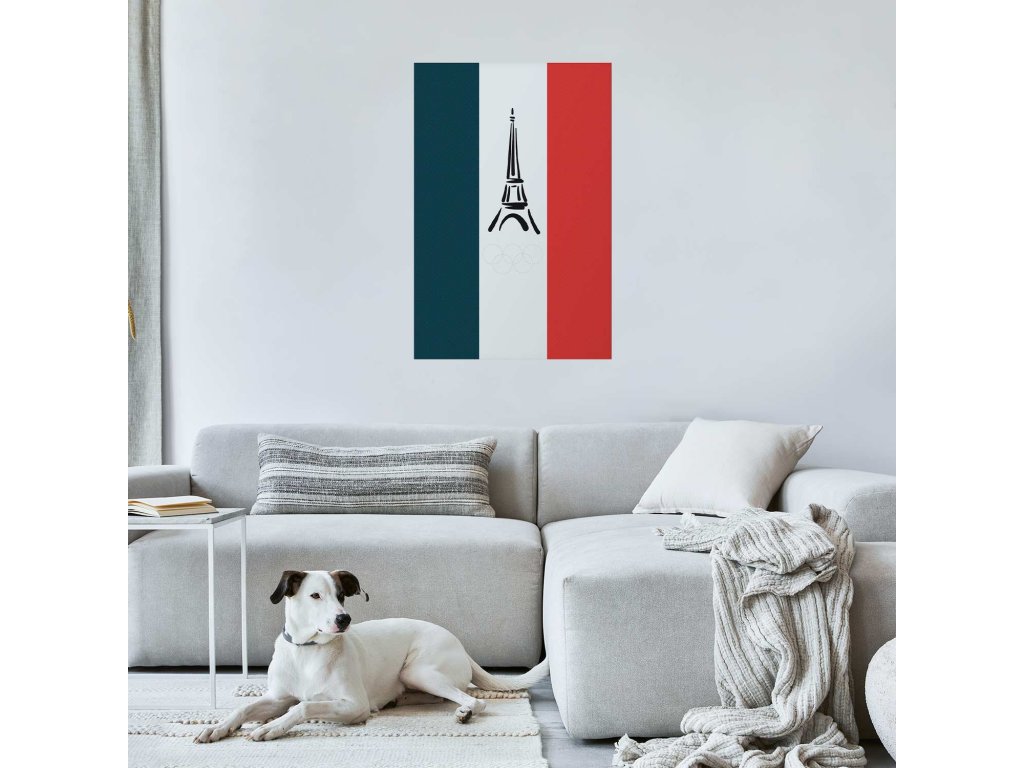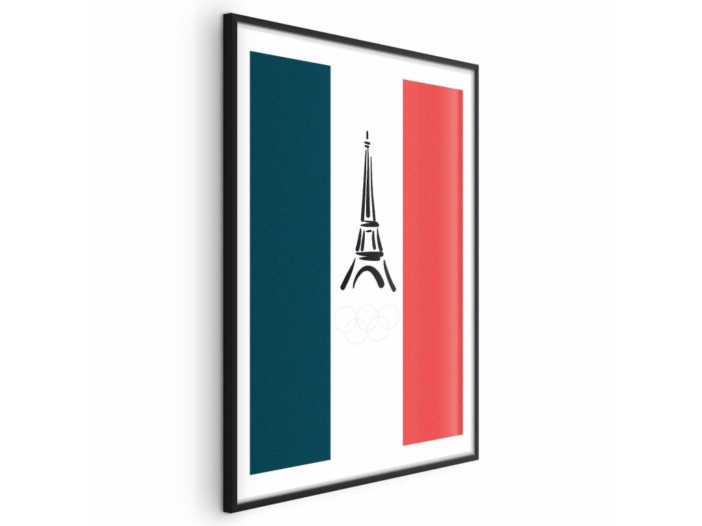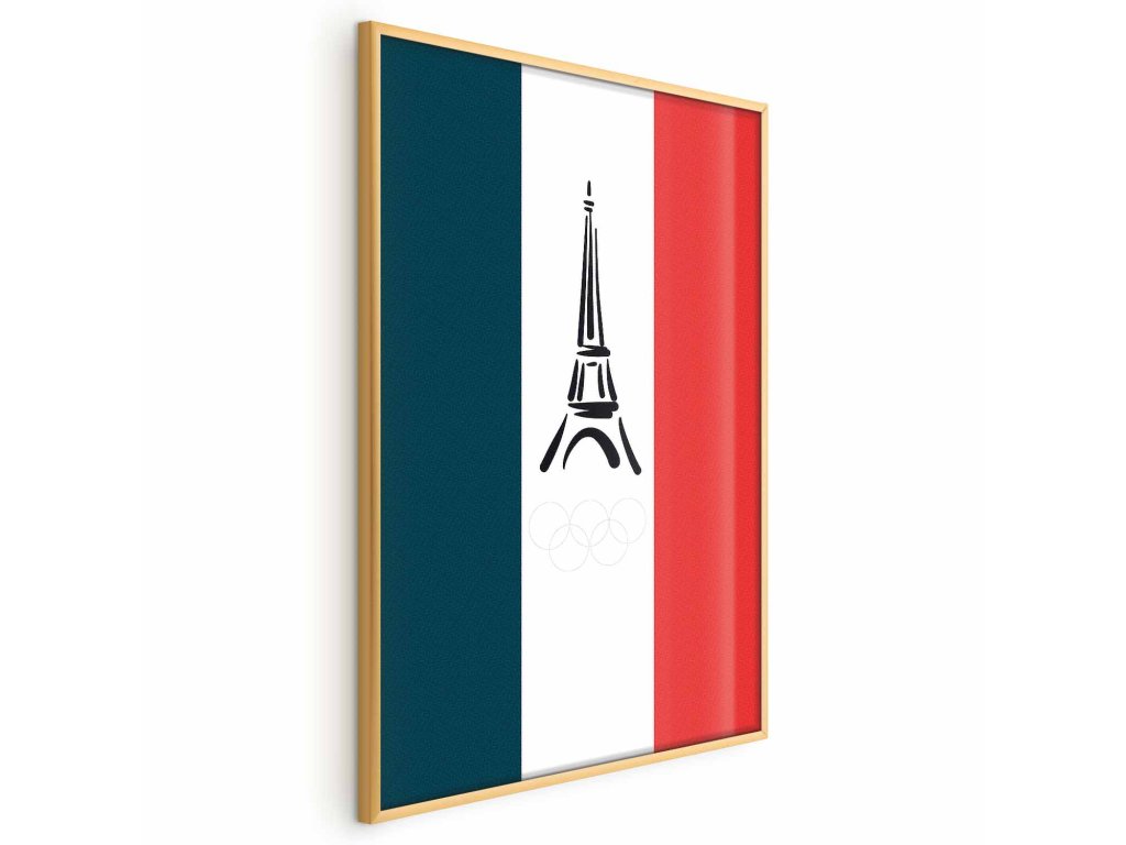 Plakát - Grafická Eiffelova věž proti francouzské vlajce