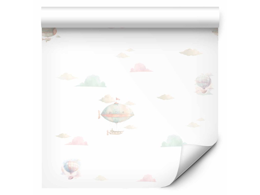Tapeta - Akvarel - Barevné balónky a vzducholodě na pozadí barevných mraků.