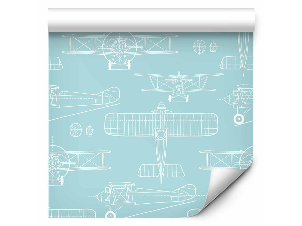 Tapeta - Sketch - Obrys letadla v bílé barvě na tyrkysovém pozadí.